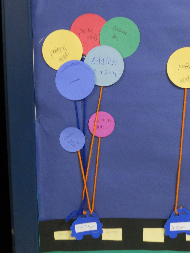 Check out these photos from year 2! I talked a lot about the Land of I Can – how I created a system for kids to master concepts. In this Land of I can, each student had a car and we would attach balloons each time they mastered a concept.