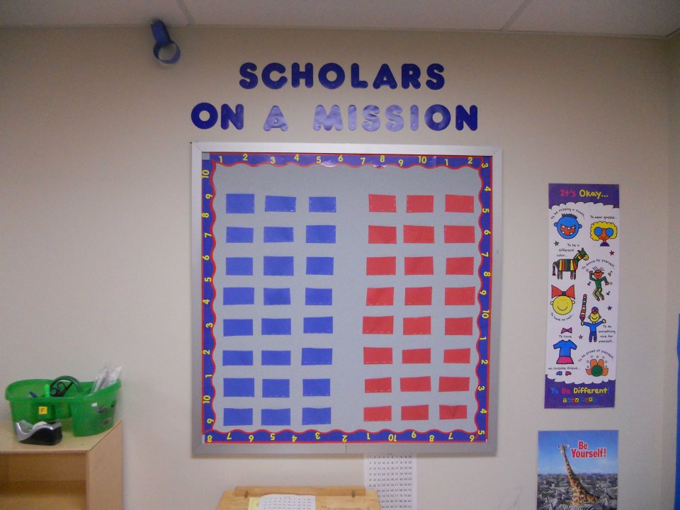 You’ll also see a photo of “Scholars on a mission.” Each kiddo had a little pocket with different “balloons” or concepts in their pocket that they needed to work to master. During centers, they could find a concept to work on and go to the shelves to pick out games that related to that concept. It was genius and helped students stay focused!